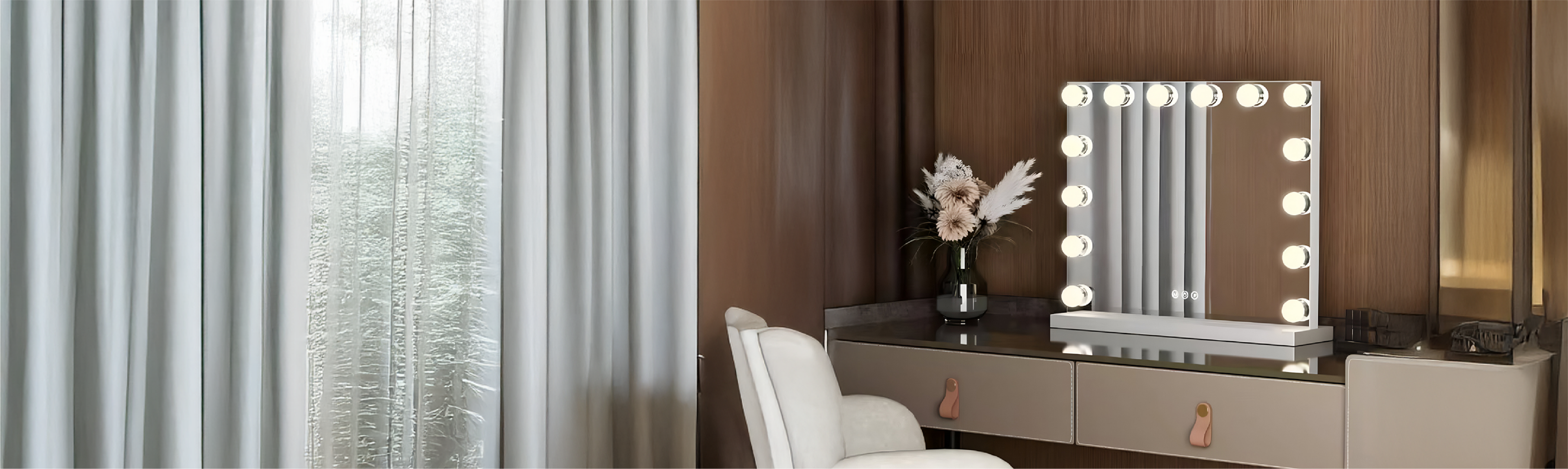 "Mijn dochter heeft deze spiegel uitgekozen en ik denk dat ik hem zelf ook ga kopen 🙂 Hele mooue spiegel met touch bediening op de spiegel zelf waarmee je de lichtenkan dimmen of naar warm of helder licht kan zetten.Goede kwaliteit! De poot waarop de spiegel staat er makkelijk onder re zetten meteen paar schroefjes. Echt een aanrader en het geld waard."
