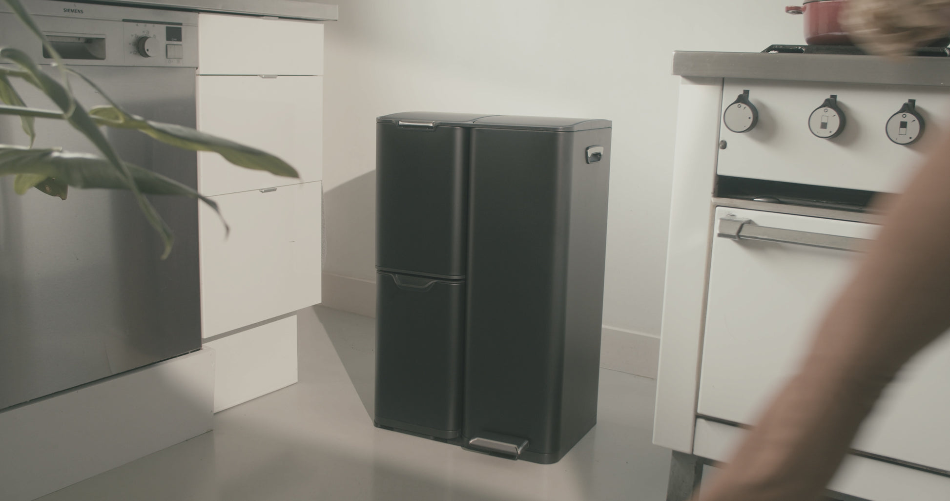 - Hygiënisch gebruik: Dankzij de pedaalbediening kun je het grootste compartiment openen zonder handen te gebruiken – ideaal bij koken of schoonmaken.